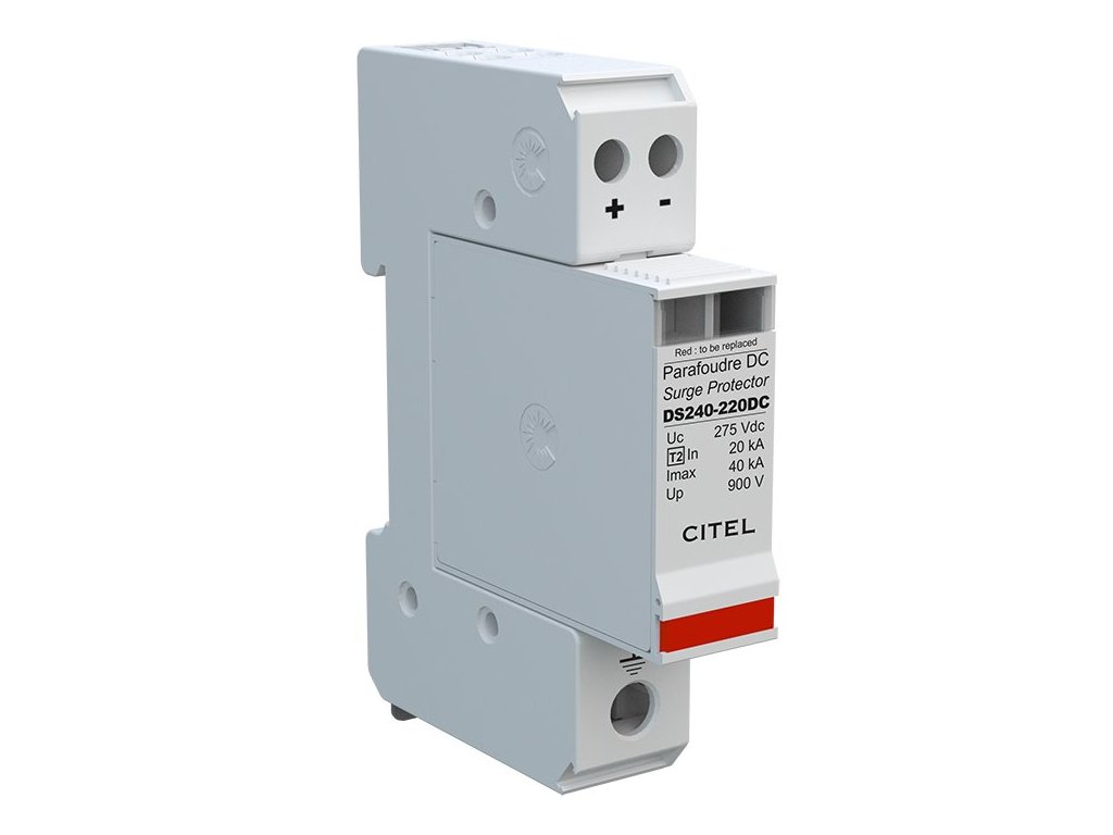 Svodič přepětí DS240S-220DC je určen k ochraně menších a středních ostrovních fotovoltaických elektráren s maximálním vstupem 275 V. Slouží jako hlavní ochrana systému proti přepěťovým špičkám způsobených např. úderem blesku. Instalace se provádí na vedení od solárních panelů před vstupem do regulátoru nebo měniče. Na tato zařízení se připojuje paralelně vůči zemnění.