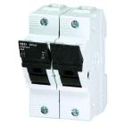 Tento pojistkový odpínač je vhodný zejména pro fotovoltaické aplikace a systémy. Dvojpólové provedení pro kladnou i zápornou větev fotovoltaických panelů. Odpínač umožňuje odpojit DC přívod od FV panelů i pod zatížením, neboť obsahuje zhášecí komoru případného el. oblouku. Umožňuje bezpečně odpínat jmenovité proudy a nadproudy. Splňuje podmínky pro bezpečné odpojení. Zároveň slouží jako jištění kladné i záporné DC větve před přetížením (nadproudem, zkratem).