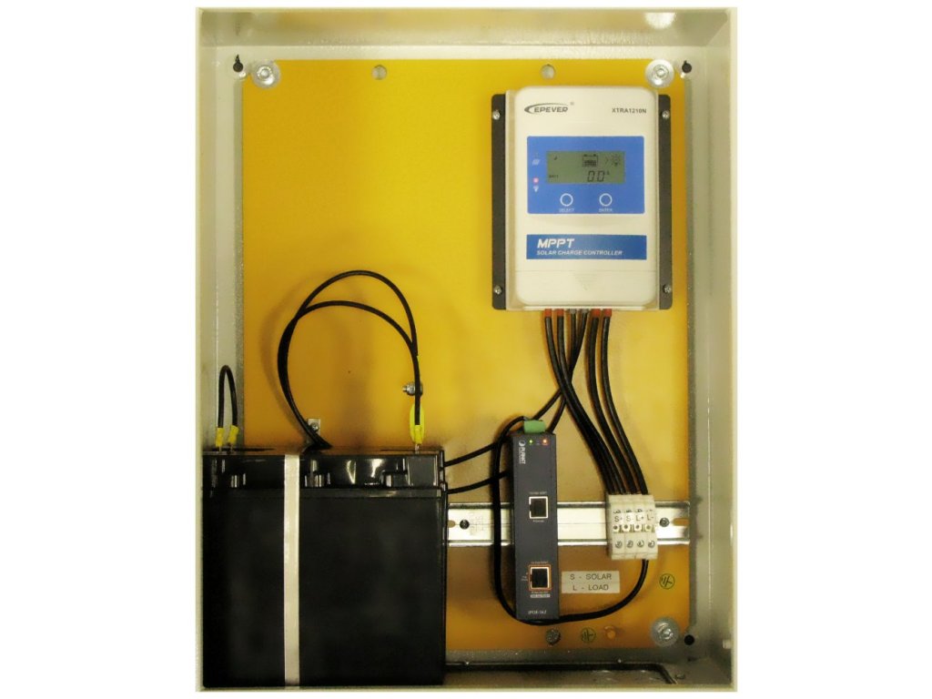 Použitý solární regulátor EPsolar je také zárukou dlouhé živostnosti v různých povětrnostních podmínkách.Použitá kapacita baterií je celkově 480 Wh, což je dostačující pro napájení zařízení s příkonem 20 W po dobu 20 h.