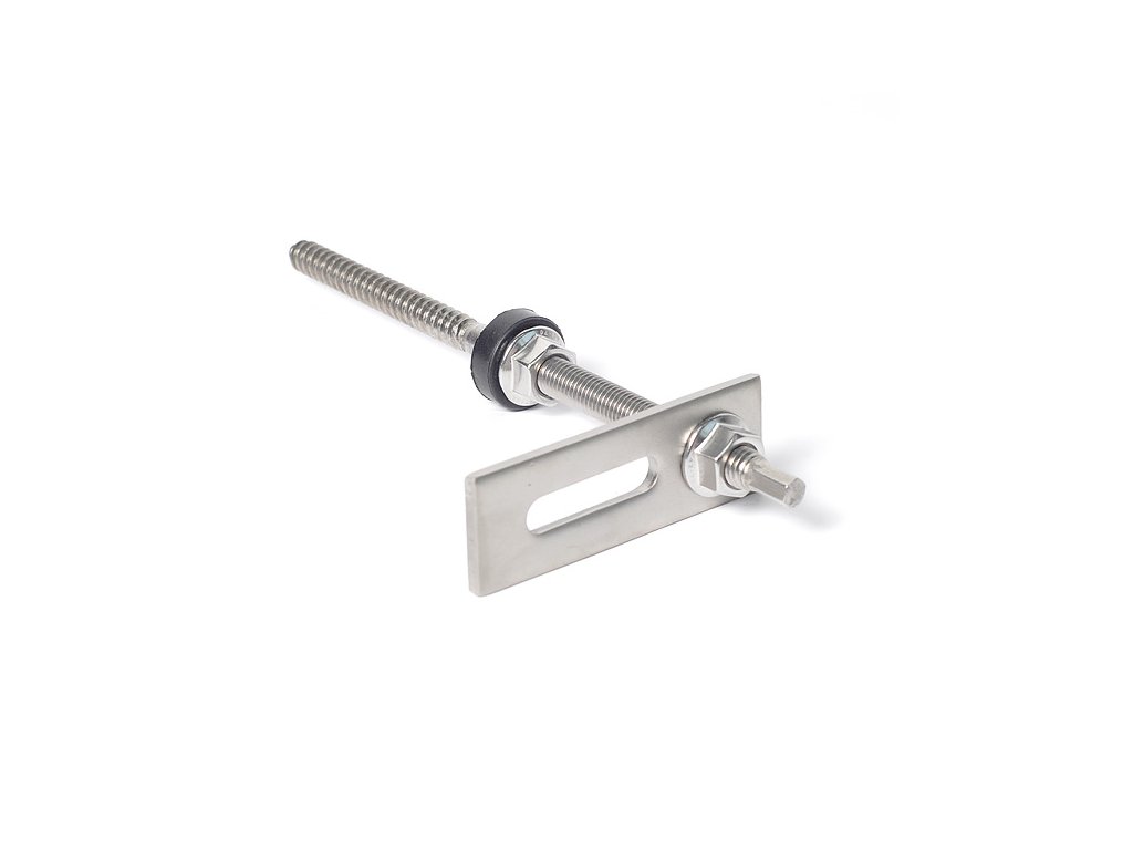 Zinkovaný kombivrut se skládá z části vrutu pro zašroubování do trámu střechy a závitové části M10 pro nastavení výšky profilu k připevnění solárního panelu. Součástí dodávky je i samotný profil s rozměry 85 × 30 × 5 mm, který umožňuje univerzální nastavení a jednoduchou montáž solárního panelu.
