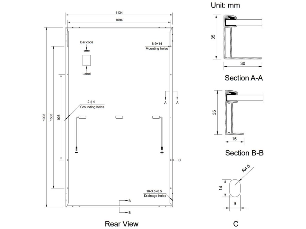 Vysoce efektivní monokrystalické panely v rozměru 1908 × 1134 × 35 mm za příznivou cenu pro rychlou návratnost investice. Navíc všechny dodávané panely mají pozitivní toleranci nominálního výkonu.