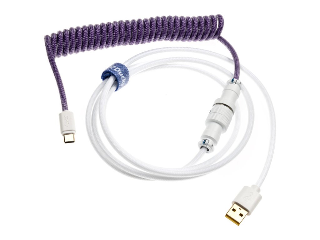 SPremicord vám ponúkaDucky štýlový spôsob, ako prezentovať svoju mechanickú hernú klávesnicu. SamozatváracíŠpirálový kábel je odĺžka 1,8 m a je vybavený pružným nylonovým plášťom. Nielenže dobre vyzerá, ale chráni aj pred zlomením kábla a ľahko kĺže po stole. StránkaTvorca-Polovica dizajnu je biela, polovica fialová.Kábel je vybavenýKonektor USB-C na jednej strane a konektor USB-A na druhej strane na druhej strane, aby bol kompatibilný s príslušnými klávesnicami Ducky. Obe časti kábla spája päťkolíková letecká zástrčka.