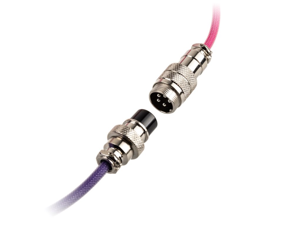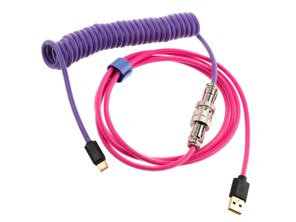 SPremicord ponukyDucky štýlový spôsob, ako prezentovať svoju mechanickú hernú klávesnicu. SamozatváracíŠpirálový kábel je odĺžka 1,8 m a je vybavený pružným nylonovým plášťom. Nielenže dobre vyzerá, ale chráni aj pred zlomením kábla a ľahko kĺže po stole. Opláštenie tu ponúkaných káblovFarebný variant Jokera je polovica fialová a druhá polovica ružová. Spojenia sú čierne.Kábel je vybavenýKonektor USB-C na jednej strane a konektor USB-A na druhej strane na druhej strane, aby bol kompatibilný s príslušnými klávesnicami Ducky. Päťkolíkový letecký konektor v pochrómovanom kryte spája obe časti kábla. Ak vlastníte rôzne Premicordy, môžete ich navzájom kombinovať a vytvárať nové zvuky. StránkaDucky Premicord spĺňa aj tie najvyššie nároky vďaka vysokej kvalite spracovania aspoľahlivo zabezpečuje rýchly prenos signálu cez USB 2.0 medzi klávesnicou a počítačom.