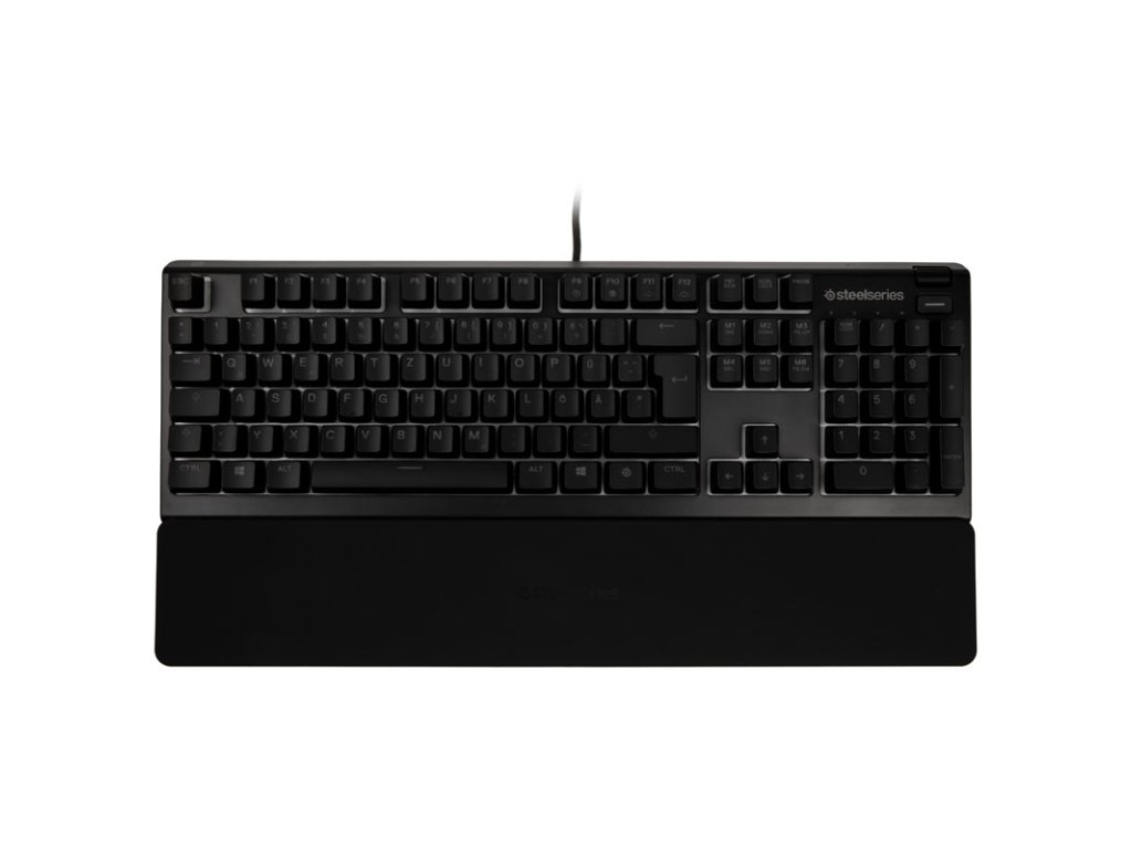 Vďakarozkladacie nožičky uhol klávesnice sa dá zmeniť. Gumový poťah zaisťuje, že klávesnica pevne stojí na stole. Jedenmagnetická opierka na dlane leží naSteelSeries a zvyšuje tak komfort obsluhy počas dlhého používania. Klávesnica je pripojená k počítaču prostredníctvom trvalo pripojeného kábla USB.