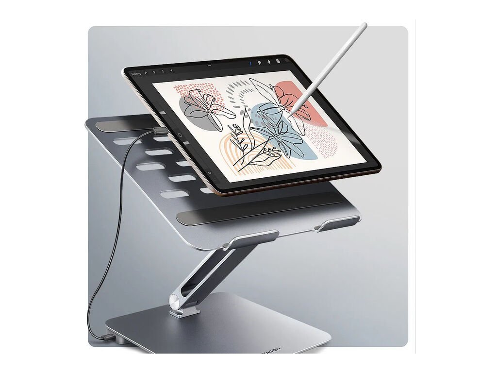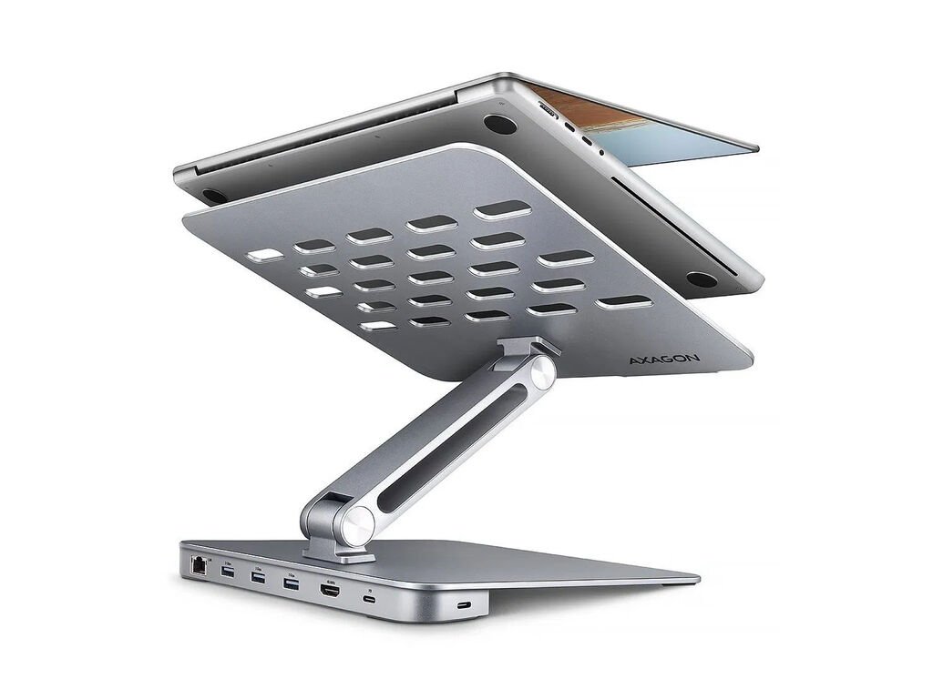 Stojan AXAGON HMC-STND pre notebooky a tablety, rozbočovač USB-C - strieborný
