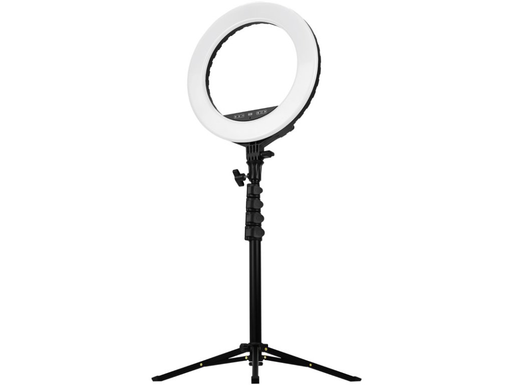 Vďaka tomuto krúžkovému svetlu si môžete osvetlenie vždy prispôsobiť aktuálnej nálade alebo požadovanej atmosfére. Môžete si vybrať nastaviteľnú teplotu farieb v rozsahu od 3 000 do 6 000 Kelvinov, vďaka čomu svetlo pôsobí studene alebo teplo. Jas a farbu prstencového svetla môžete ovládať pomocou integrovaného vypínača alebo infračerveného diaľkového ovládania.Stabilný stojan a jasné osvetlenie