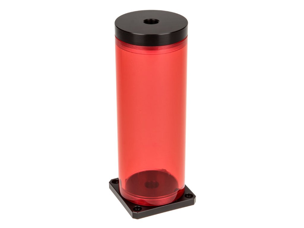 Čerpadlá Laing DDC patria k elite vodných čerpadiel na PC a sú referenciou najmä pre vysokoprietokové systémy vďaka svojmu enormnému tlaku. Jedinou nevýhodou sú neštandardizované prípojky Laing, preto mnohí výrobcovia vodného chladenia ponúkajú alternatívne kryty so závitom G1/4 palca. Špecialista na pripojenie Bitspower ponúka aj jednoduchý, elegantný kryt vyrobený zo špeciálneho plastu odolného voči vysokým teplotám z acetalu alebo POM.Súprava na aktualizáciu opísaná v tomto článku je určená práve na tento kryt. Obsahuje zásobník, ako aj veko a základný prvok z červeného, ale priehľadného akrylu. Zásobník má výšku 150 mm.
