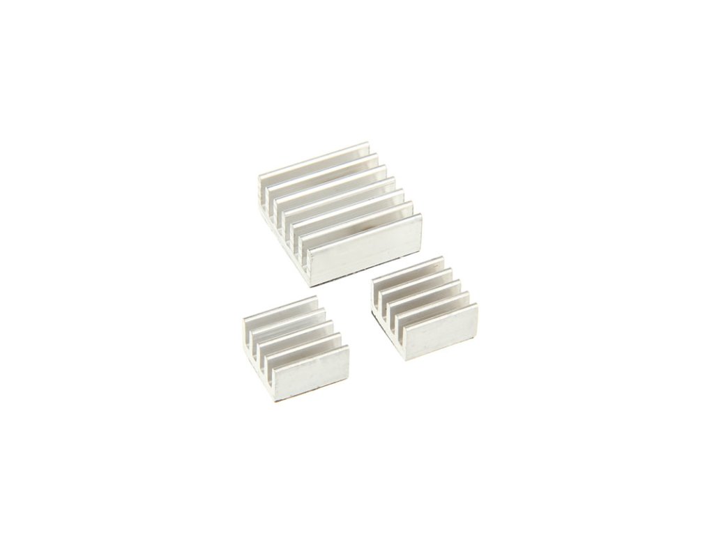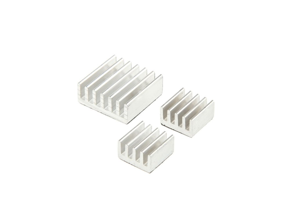 Hoci jednodoskový počítač Raspberry Pi s úsporným nízkonákladovým SoC od spoločnosti Broadcom bol navrhnutý na pasívnu prevádzku bez dodatočného chladenia čipov, voliteľné chladiče sú obľúbeným prostriedkom na zníženie nevyhnutne vysokých teplôt a tým aj na ochranu komponentov malej základnej dosky.Pre overclockerov, ktorí chcú z minipočítača s taktom procesora 1 000 MHz a vyšším vyžmýkať maximálny výkon, sa odporúčajú najmä prídavné chladiče na optimalizáciu odvodu tepla, aby sa zabránilo prehriatiu. Táto praktická sada hliníkových chladičov obsahuje tri chladiace prvky striebornej farby, ktoré vám umožnia získať z Raspberry Pi plný výkon.
