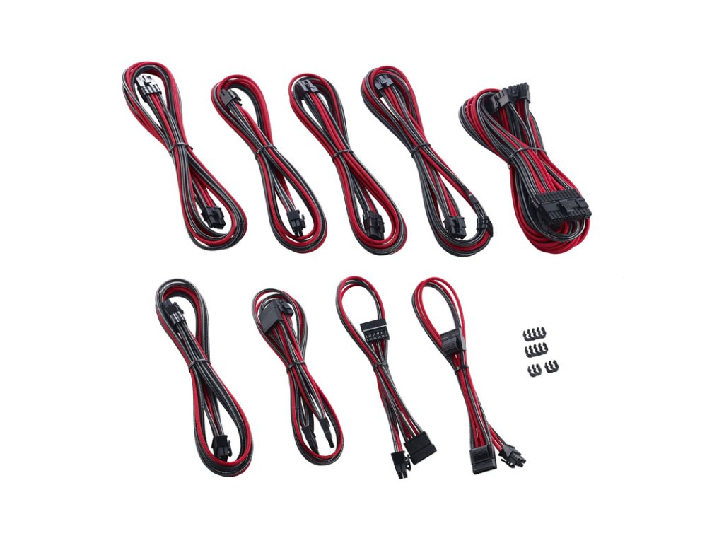 Káble obsahujú celkomdva 8-pinové káble PCIe každý s jednýmJeden 8-pinový konektor a 6-pinový konektor. A24-pinový kábel ATX, ako aj 8-pinový a 4+4-pinový kábel EPS12V/ATX12V na napájanie základnej dosky a procesora. Sada obsahuje aj celkom dva káble SATA, každý s dvoma prípojkami, na napájanie ďalších hardvérových komponentov. Súčasťou dodávky sú dva káble8-drážkový a dva 4-drážkové káblové hrebene možno použiť aj na dokonale paralelne usporiadané žily a vytvoriť tak absolútne čistý dizajn kábla.
