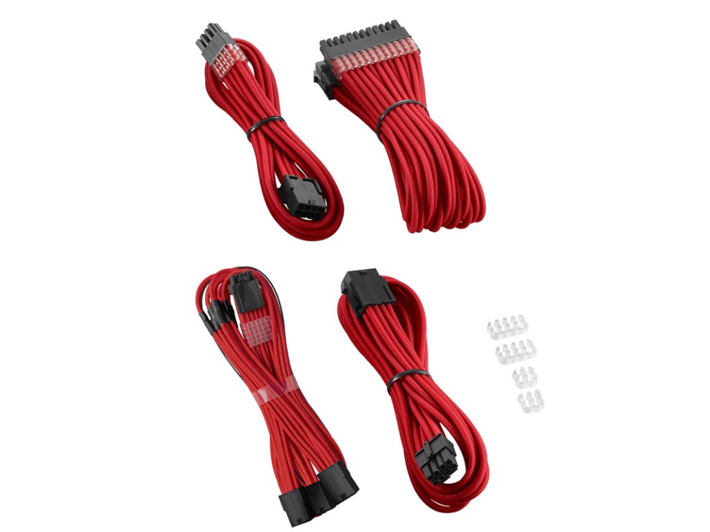Okrem 16-pinového kábla 12VHPWR na 3x 8-PCIe s vodičmi 16AWG súprava obsahuje káble na napájanie základnej dosky. Na stránke Súprava na predĺženie kábla CableMod Pro ModMesh 12VHPWR je obzvlášť vhodný pre kompaktné systémy a využíva vysokokvalitné puzdro z materiálu ModMesh. Niektoré káble sú vybavené predinštalovanými uzavretými káblovými hrebeňmi. Ďalšie káblové hrebene a káblový kryt sú súčasťou súpravy.