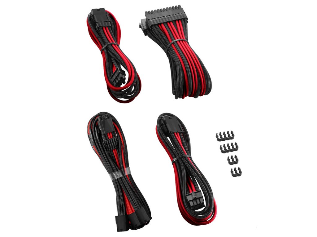 Okrem 16-pinového kábla 12VHPWR na 3x 8-PCIe s vodičmi 16AWG súprava obsahuje káble na napájanie základnej dosky. Na stránke Súprava na predĺženie kábla CableMod Pro ModMesh 12VHPWR je obzvlášť vhodný pre kompaktné systémy a využíva vysokokvalitné puzdro z materiálu ModMesh. Niektoré káble sú vybavené predinštalovanými uzavretými káblovými hrebeňmi. Ďalšie káblové hrebene a káblový kryt sú súčasťou súpravy.
