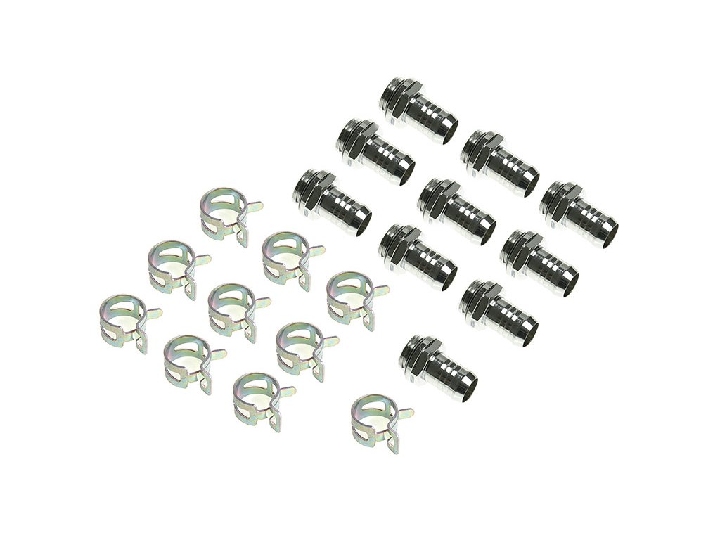 Na pripojenie jednotlivých komponentov vodného chladenia je nevyhnutné zvoliť správne prípojky a ich dostatočný počet. S týmto balíkom je inštalácia jednoduchá, najmä preto, že v porovnaní s jednotlivými nákupmi sa poskytuje zľava.Súčasťou dodávky je desať zásuvných spojov (armatúr) a desať hadicových svoriek - každá v striebornej farbe. Prípojky Bitspower majú závit G1/4 palca a sú určené pre hadice s vnútorným priemerom 10 mm.