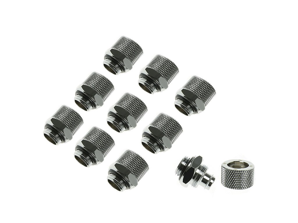 Na pripojenie jednotlivých komponentov vodného chladenia je nevyhnutné zvoliť správne prípojky a ich dostatočný počet. S týmto balíkom je inštalácia jednoduchá, najmä preto, že v porovnaní s jednotlivými nákupmi sa poskytuje zľava.Súčasťou dodávky je desať strieborných poniklovaných kľúčov. Sú vyrobené spoločnosťou Bitspower, majú závit G1/4 palca a sú určené pre hadice s priemerom 11/8 mm.
