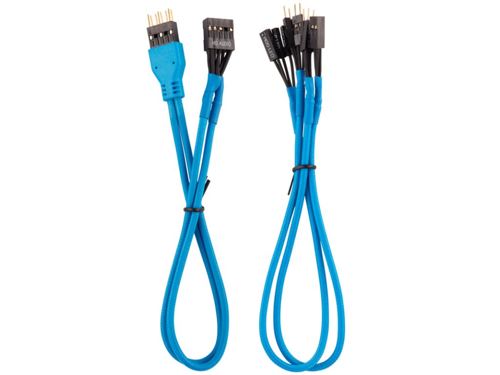 Modernizácia vzhľadu vlastného počítača je čoraz populárnejšia. V rámci tohto trendu čoraz viac modderov uvažuje aj o oplášťovaní káblov. Pri tomto procese sa jednotlivé alebo zväzkové zväzky káblov opatria elegantným opleteným plášťom a prechodové kusy k prípojkám sa upevnia takzvanou zmršťovacou bužírkou. Táto prestavba je obzvlášť prestížna, ak sa každý kábel obopína samostatne, pretože táto úprava je veľmi komplexná a jej výsledkom je bezkonkurenčný vzhľad.Opláštenie káblov však vyžaduje veľké úsilie a často je spojené so stratou záruky na komponenty. Pre používateľov, ktorí sa tomu vyhýbajú, ponúka spoločnosť Corsair kompletné a vopred obalené káble. Ide o modrú súpravu pre pripojenie predného panelu skrine.