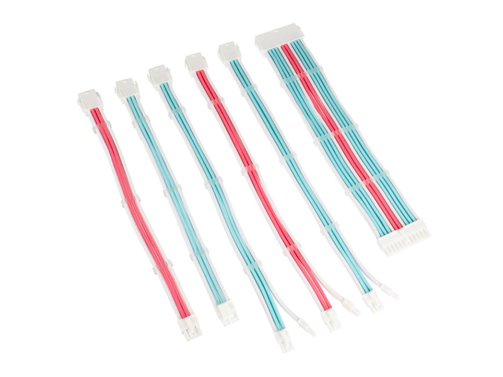 Súprava predlžovacích opletených káblov Kolink Core Adept - žiarivo biela/neonovo modrá/čistá ružová