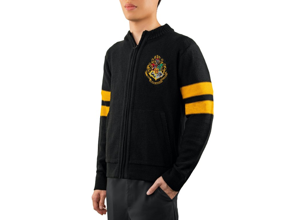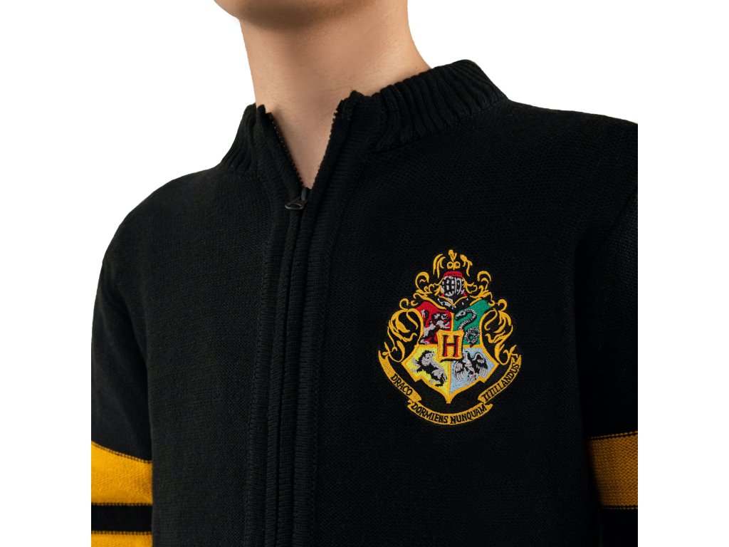 Slušivý cardigan pro čaroděje a mágy z Bradavic s vyšitým barevným erbem školy čar a kouzel na prsou. Originální oblečení pro fanoušky Harry Pottera. Svetr má zapínání na zip a součástí jsou kapsy na ruce.Diskusia
