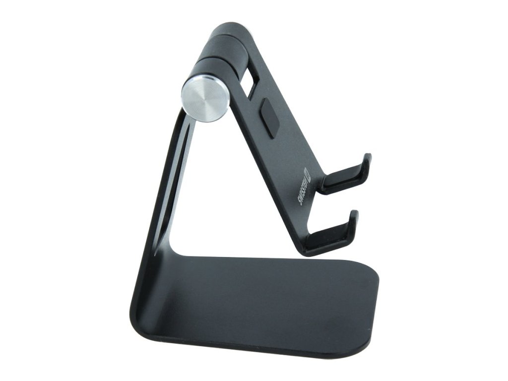 SWISSTEN hliníkový stojánek na telefonStojánek na telefon či tablet do 8" z elegantního broušeného hliníku je vhodný jak na pracovní stůl, tak třeba na noční stolek. Svým vzhledem vhodně doplní design každé místnosti, a zároveň poskytne vašemu chytrému telefonu stabilní zajištění proti pádu a poškození. Vybaven je čtyřmi protiskluzovými podložkami na spodní straně a dalšími ochrannými silikonovými plochami přímo na těle stojánku, kde slouží jako ochrana proti poškrábání telefonu. Celý stojánek lze díky kloubu jednoduše složit. Středový kloub umožňuje také libovolné natočení stojánku do preferovaného úhlu.