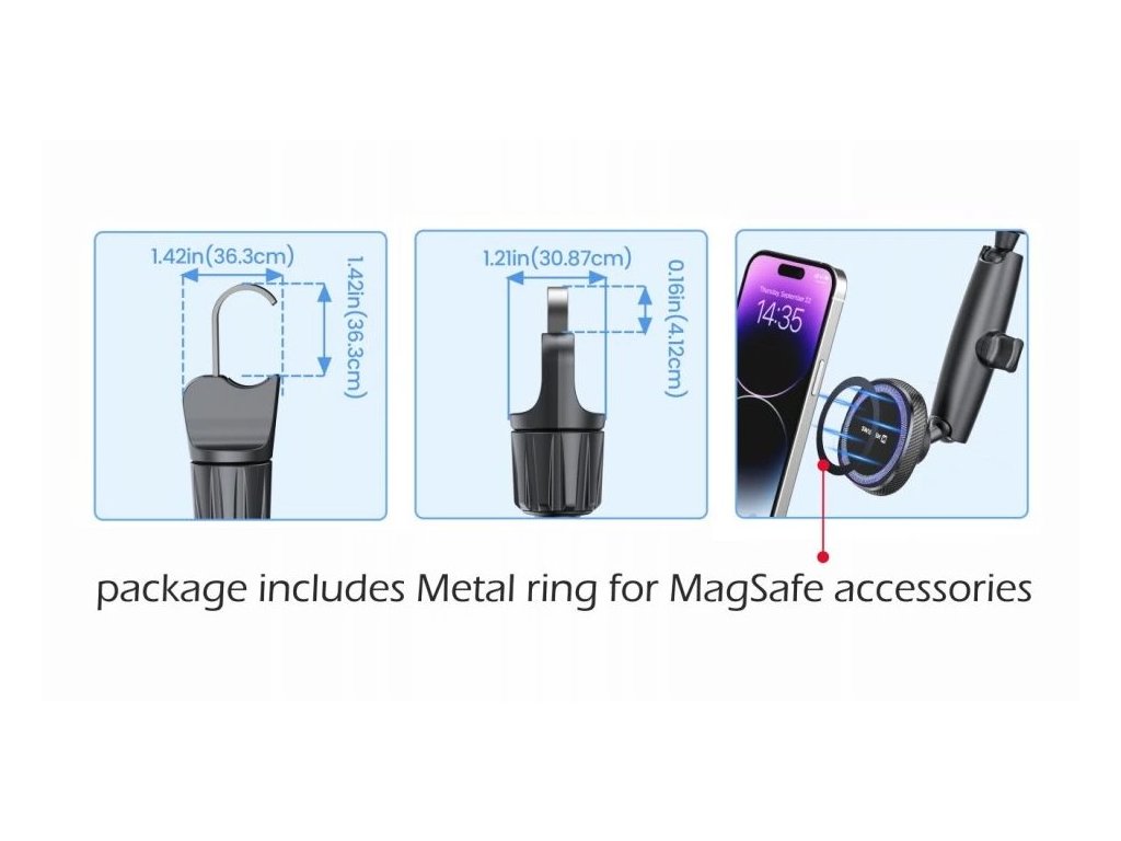 SWISSTEN MIRRORDržák telefonu do auta s technologií přichycení Magsafe bezpečně uchytí iPhone 13 a novější. Pro ostatní smartphony (i jiných značek) je součástí balení nalepovací kroužek, který se přilepí na záda smartphonu nebo pouzdra. Díky upevňovacímu mechanismu se dá držák přichytit k tyčce s průměrem 4,12–36,3 mm, a proto je vhodný pro uchycení na zpětné zrcátko.