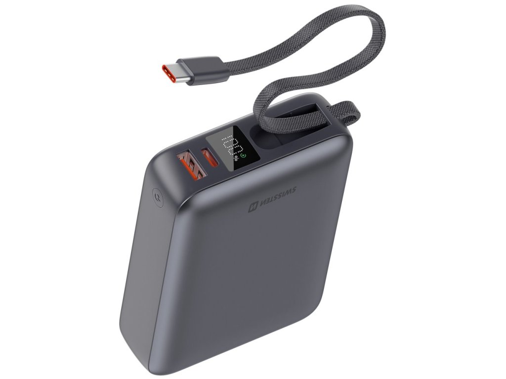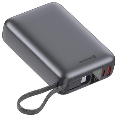 Swissten Power bank 20000 mAh 45W s integrovaným kabelem USB-C / šedá