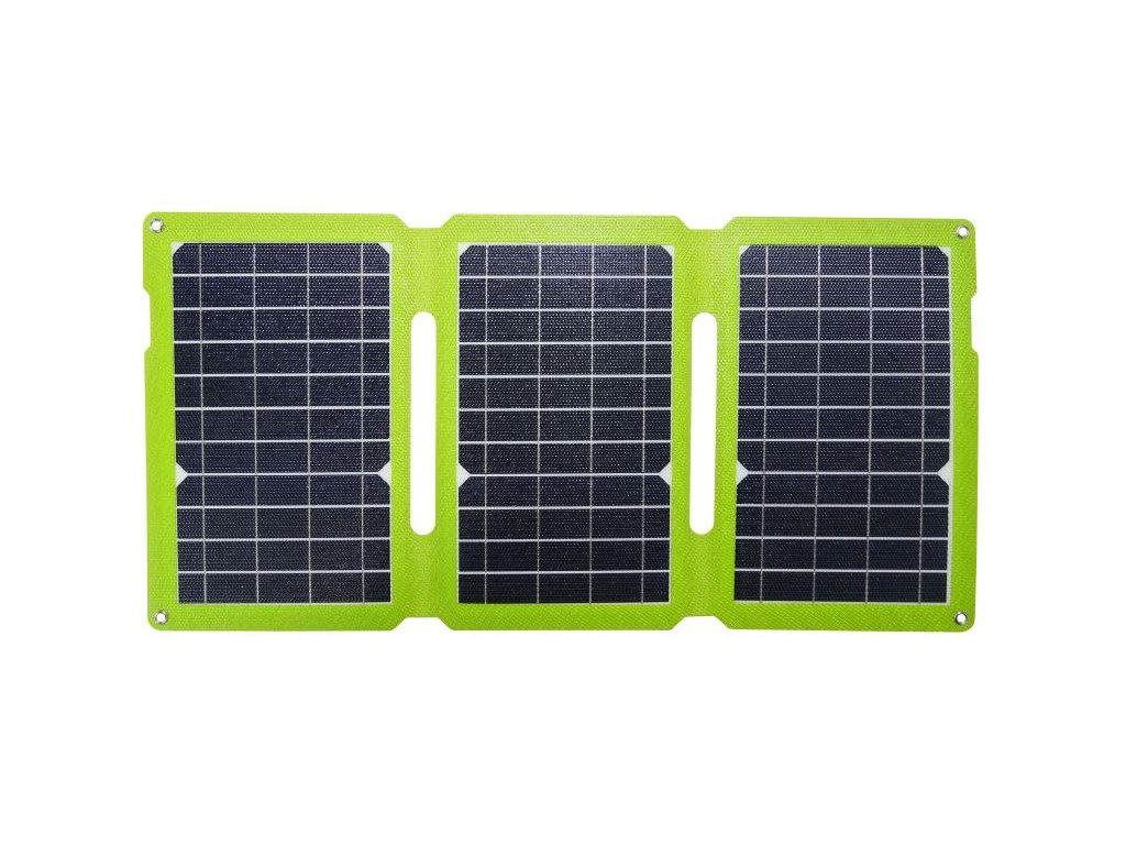 Skládací solární panel je praktické zařízení pro dobíjení elektroniky pomocí sluneční energie. Tento přenosný solární panel se skládá ze tří účinných solárních panelů s celkovým výkonem 21 W a účinností až 23 %, což zajišťuje rychlé a spolehlivé dobíjení v optimálních světelných podmínkách. Díky kompaktním rozměrům je snadno skladný a přenosný, což z něj činí vhodného společníka pro kempování, turistiku nebo jiné outdoorové aktivity. Panel je vybaven USB-C a USB porty pro flexibilní nabíjení různých zařízení, jako jsou mobilní telefony, tablety nebo kamery. Potěší voděodolnost a zvýšená odolnost proti mechanickému opotřebení. V rozích solárního panelu naleznete kovová očka, s jejichž pomocí můžete panel připevnit například na batoh.