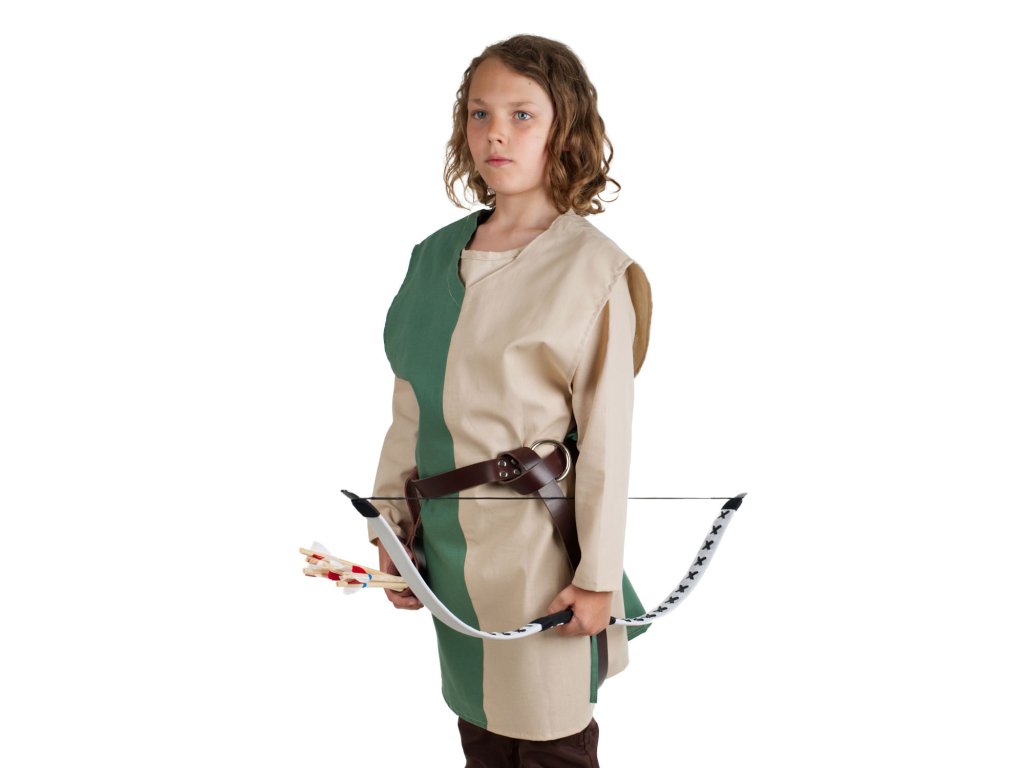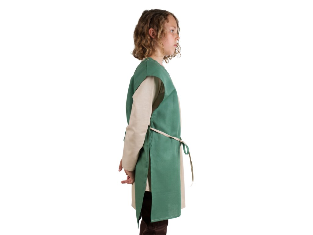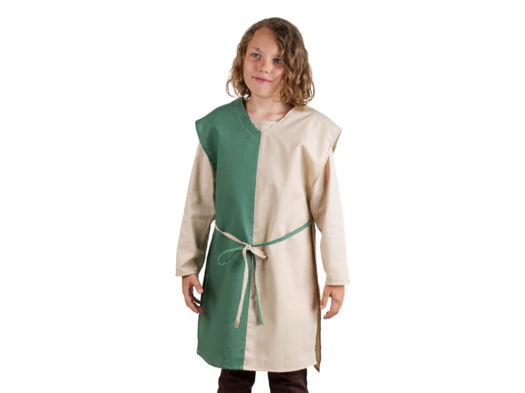Chystá se vaše dítko na letní tábor, karneval či maškarní? Vylaďte jeho kostým k dokonalosti! Tabard se používal již ve středověku. Nosili jej nejen mušketýři, pěší vojáci, ale také rolníci a mniši. Tabard pro děti tak představuje základní pilíř historického kostýmu, který pak můžete vyšperkovat podle svého gusta. Dětský tabard je ušitý ze 100% bavlny jako volná tunika, která je po stranách otevřená. Stačí si ho obléct přes hlavu, svázat šňůrkami, které nabízejí vícero variant k zavazování, a může vaše ratolest vyrazit na karneval, do bitvy nebo na zmrzku. Tabard pro děti je stejný z přední i zadní strany, v případě nějakého nechtěného ušpinění, třeba od té zmrzliny, stačí tabard otočit. Naše švadlenky myslely opravdu na všechno. Nevyhovuje vám béžovo-zelená barevná kombinace? Mrkněte na další dvě barevné varianty, které pro vás máme: modro-bílá, červeno-černá.Diskusia