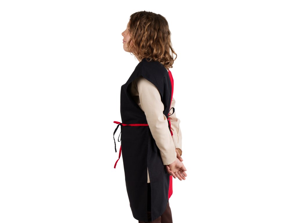 Chystá se vaše dítko na letní tábor, karneval či maškarní? Vylaďte jeho kostým k dokonalosti! Tabard se používal již ve středověku. Nosili jej nejen mušketýři, pěší vojáci, ale také rolníci a mniši. Tabard pro děti tak představuje základní pilíř historického kostýmu, který pak můžete vyšperkovat podle svého gusta. Dětský tabard je ušitý ze 100% bavlny jako volná tunika, která je po stranách otevřená. Stačí si ho obléct přes hlavu, svázat šňůrkami, které nabízejí vícero variant k zavazování, a může vaše ratolest vyrazit na karneval, do bitvy nebo na zmrzku.Tabard pro děti je stejný z přední i zadní strany, v případě nějakého nechtěného ušpinění, třeba od té zmrzliny, stačí tabard otočit. Naše švadlenky myslely opravdu na všechno. Nevyhovuje vám červeno-černá barevná kombinace? Mrkněte na další dvě barevné varianty, které pro vás máme: modro-bílá, béžovo-zelená.Diskusia