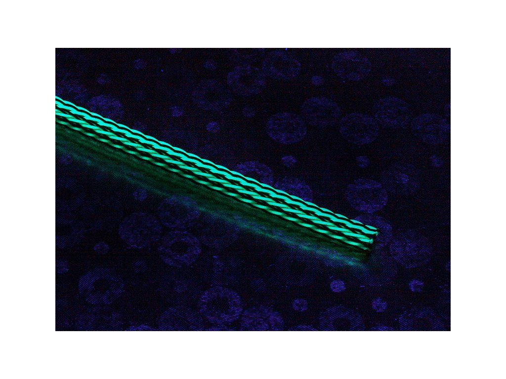 Ide o tenký 3 mm rukáv v mimoriadne účinnej dvojfarebnej úprave, pri ktorej sú zelené a čierne vlákna tkané spoločne. Táto kombinácia je obzvlášť pútavá pod UV svetlom, pretože zelené vlákna žiaria, zatiaľ čo čierne zostávajú tmavé, čím vytvárajú exkluzívny kontrast.