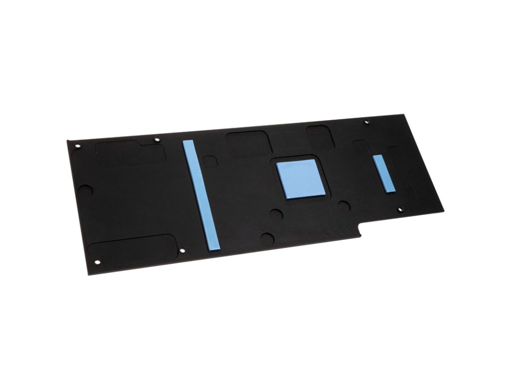 Okrem optickej jednotky ponúka zadná doskazvýšená stabilita grafickej karty s vodným chladičom. Tým sa účinne zabráni tomu, aby sa doska plošných spojov ohýbala v dôsledku jednostranného uťahovania skrutiek pri pripájaní hlavného chladiča a bola tak trvalo vystavená namáhaniu.