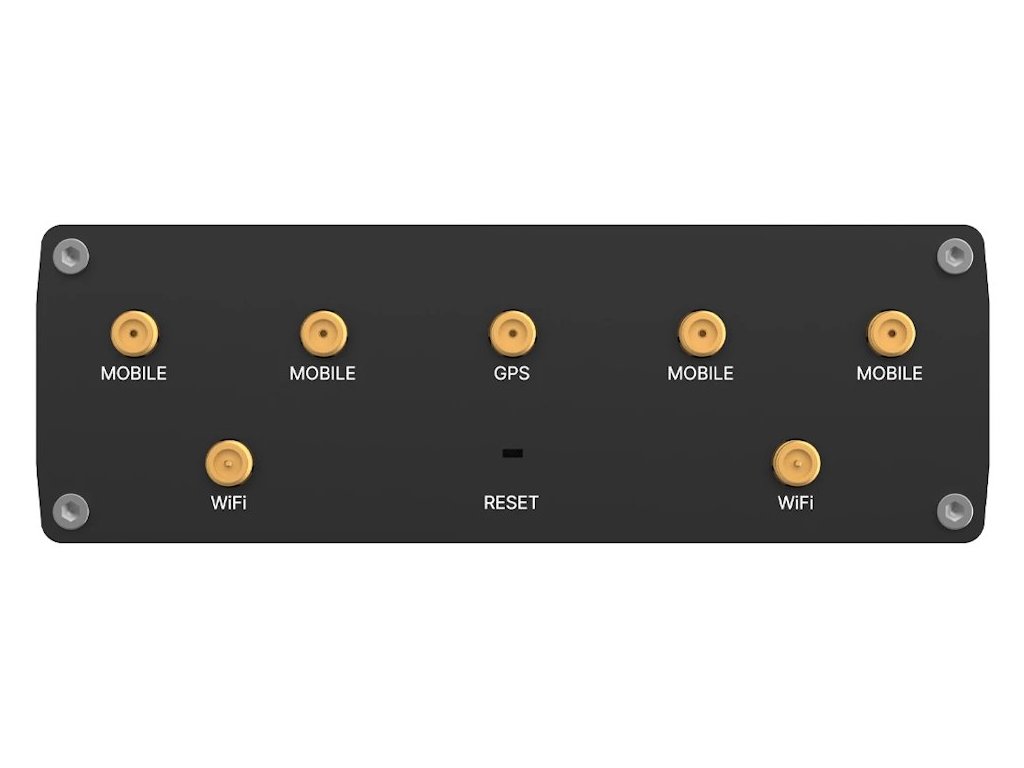Anténní konektory: 4× SMA (mobilní), 2× RP-SMA (Wi-Fi), 1× SMA (GNSS)