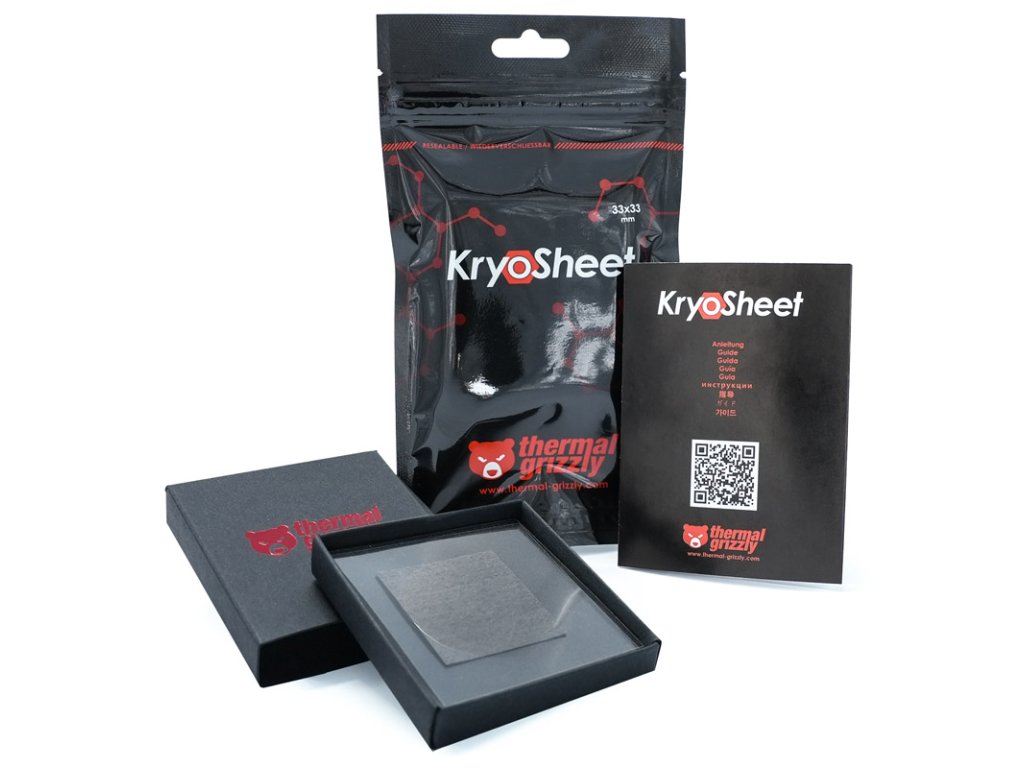 Thermal Grizzly predstavuje sKryoSheet predstavuje nový produkt, ktorý je súčasťou propagovaných "vysoko výkonných chladiacich riešení". Grafenové tepelné podložky zo série Thermal Grizzly KryoSheet možno použiť ako vynikajúcu alternatívu k tepelným pastám zo segmentu vyšších výkonov. Podobne ako podložky Carbonaut majú prispôsobivý povrch s veľmi vysokou tepelnou vodivosťou.