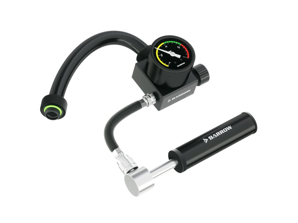 SLick tester z adresyBarrow nepredvídané nehody spôsobené netesným vodným chladiacim systémom sú minulosťou. Netesnosti sa zvyčajne zistia až po určitom čase a až po naplnení systému. STester tesnosti Barrow idete bezpečnou cestou. Váš hardvér tak zostane v suchu a bezpečí.Pred naplnením slučky vodou tester sa jednoducho pripojí k slučke v ktoromkoľvek bode pomocou závitu G1/4 palca. Pružná gumová koncovka umožňuje ľahko dosiahnuť aj do najodľahlejších kútov puzdra. Systém sa potom natlakuje. Pre absolútnu stabilitu tlaku je nainštalovaný aj spätný ventil. Tlakovaniečerpadlo je súčasťou dodávky.