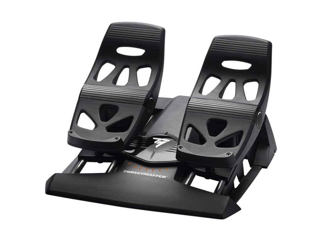 Na úplné ponorenie sa do lietania alebo vesmírnych simulátorov potrebujete okrem kombinácie joystickov HOTAS aj správne pedále kormidiel. Na stránke T.FRP sú kompatibilné s najpopulárnejšími HOTAS a joystickmi od Thrustmaster. Pedále Thrustmaster Flight Rudder Pedals (T.FRP) sa vyznačujú obvyklými vysokými štandardmi kvality a prvotriednymi materiálmi spoločnosti Thrustmaster.Dva 25 cm dlhé brzdové pedále sú namontované na diferenciálnej brzdovej náprave a posúvajú sa po štyroch hliníkových koľajničkách. Os kormidla je samostrediaca a má dlhý zdvih na presné manévre. Ergonomické pedále majú odnímateľnú opierku päty.