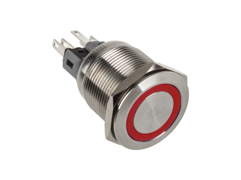 Tlačidlo sa inštaluje veľmi jednoducho pomocou závitu (22 mm) a tenkej šesťhrannej matice (24 mm). Elektricky je pripojené prostredníctvom normálne zatvoreného kontaktu a normálne otvoreného kontaktu, ako aj samostatného páru kontaktov na aktiváciu LED.