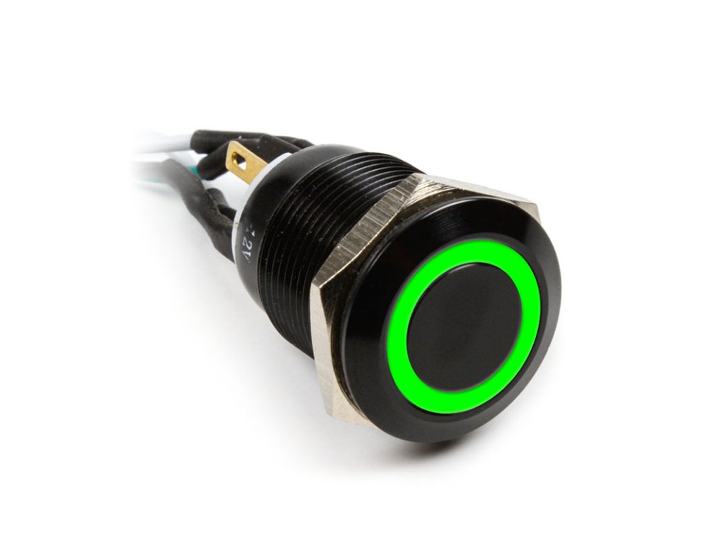 Tlačidlo proti vandalizmu Impactics 19 mm, IP65, zelená LED - čierne