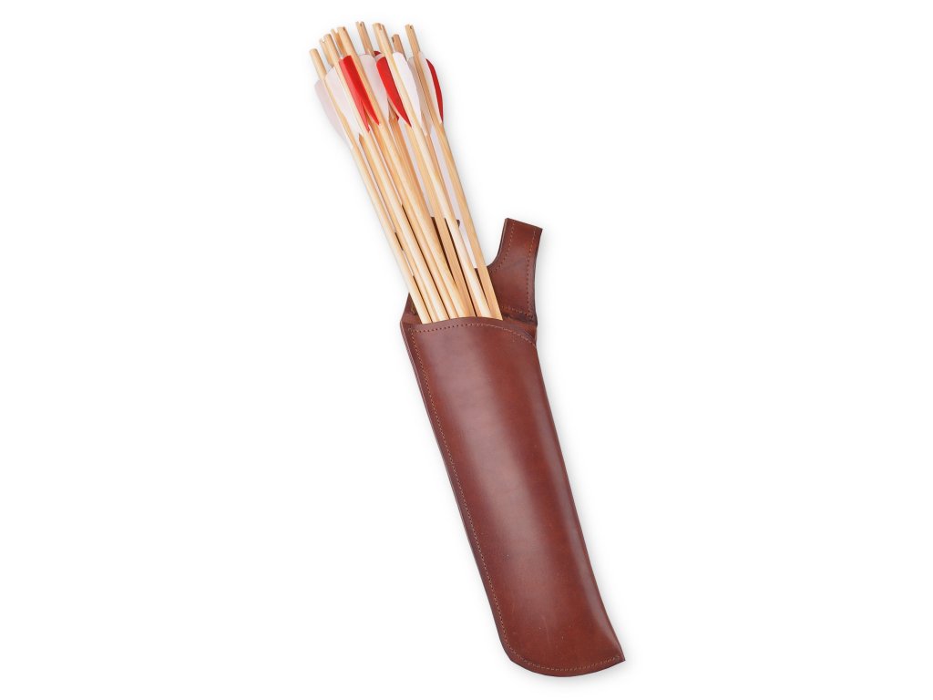 Kožený boční toulec na šípy pro obávané a rychlé lučištníky, před nimiž není v bezpečí ani padající jablko. Neomezuje v pohybu a šípy máte ihned po ruce. Má 2 oka k zavěšení na opasek (na levou stranu).Diskusia