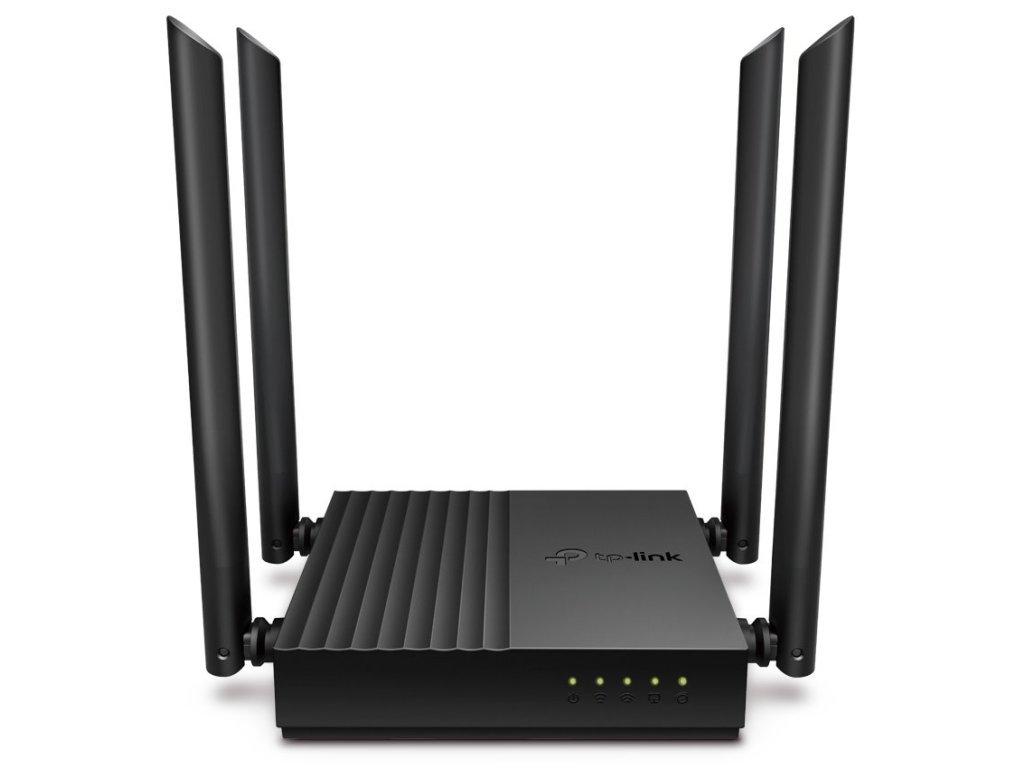 TP-Link Archer C64Dvoupásmový bezdrátový Wi-Fi router pracující na frekvencích 2,4 a 5 GHz standardu 802.11a/b/g/n/ac. Čtyři externí antény poskytují stabilní bezdrátové připojení a optimální pokrytí. V pásmu 2,4 GHz dosahuje přenosových rychlostí až 400 Mbit/s a v pásmu 5 GHz až 867 Mbit/s. Na zadní straně disponuje čtyřmi Gigabitovými RJ-45 LAN porty a jedním Gigabitovým RJ-45 WAN portem.