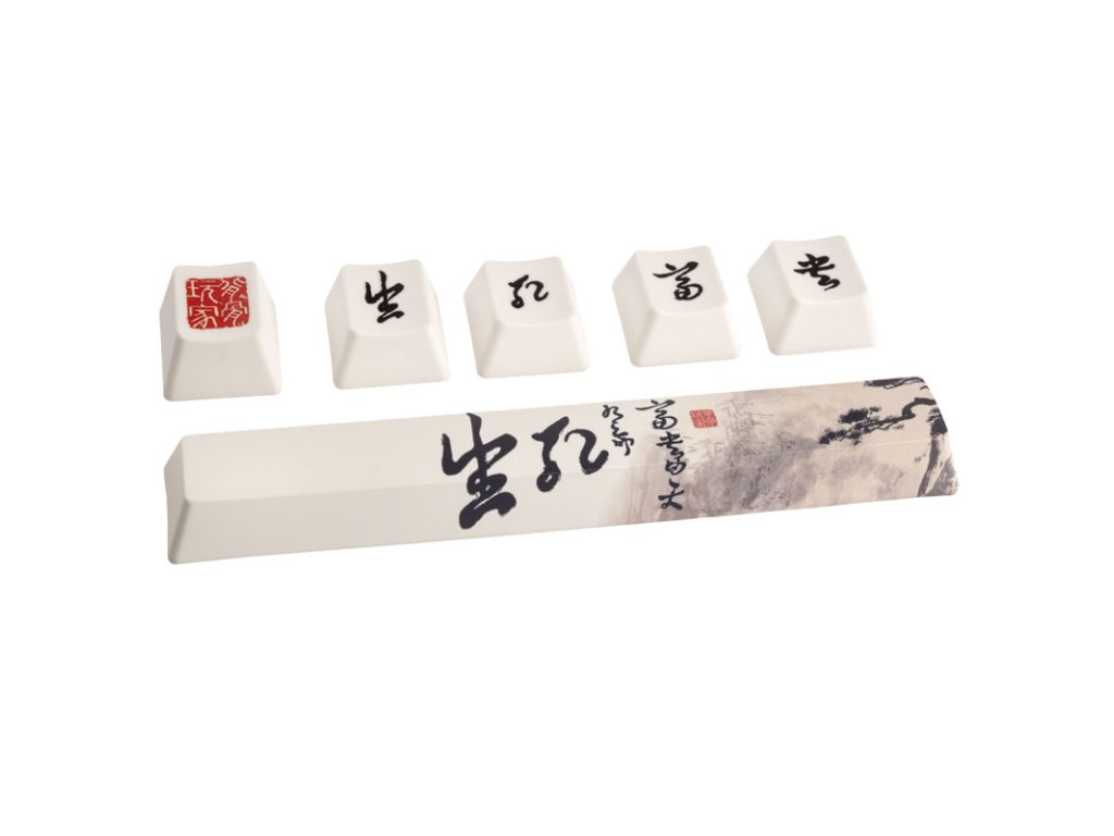 Od kaligrafie ku klávesnici. Téma dizajnu týchto šiestich klávesov PBT je venovaná japonskej kaligrafii "Shodo" Dodajte svojej mechanickej klávesnici nádych kúzla Ďalekého východu. Sú vhodné pre spínače Cherry MX, ako aj pre všetky identické spínače klávesov od iných výrobcov.Klapky sú vyrobené z PBT, mimoriadne odolného polokryštalického plastu. Ich označenie a dizajnový motív boli do plastu zapracované z piatich strán pomocou procesu dye-sub, takže sú prakticky neovplyvniteľné odieraním. Vďaka tomu sú tieto klávesnice zZradcovia mimoriadne odolné. Označenie na klávesoch nie je priesvitné.