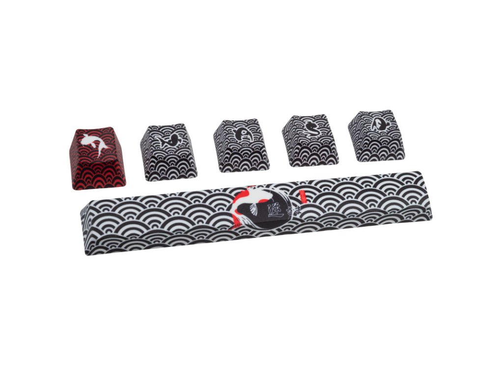 Týchto šesť krytov klávesov z PBT predstavuje ich dizajnový motívSakasama Dark všetko hore nohami. Súčasťou sady je aj zodpovedajúci kryt klávesov, ktorý dodá mechanickej klávesnici obrátený medzerník - obľúbený medzi nadšencami klávesníc. Kryty klávesov sú zdobené koi (Nishikigoi) a hodia sa k spínačom Cherry MX, ako aj ku všetkým rovnakým spínačom od iných výrobcov.Klapky sú vyrobené z PBT, mimoriadne odolného polokryštalického plastu. Ich označenie a dizajnový motív boli do plastu zapracované z piatich strán pomocou procesu dye-sub, takže sú prakticky neovplyvniteľné odieraním. Vďaka tomu sú tieto klávesnice zZradcovia mimoriadne odolné. Označenie na klávesoch nie je priesvitné.