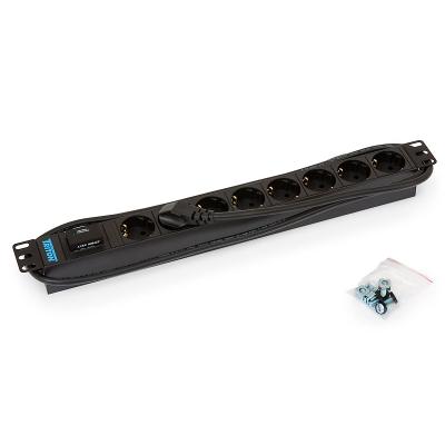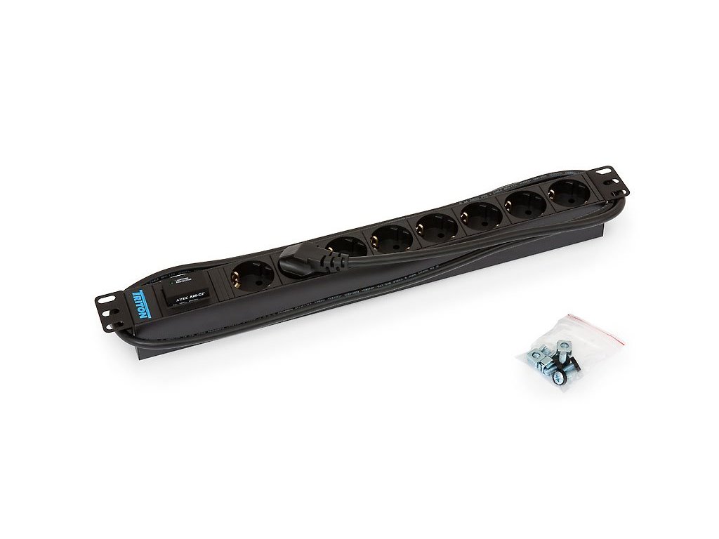 Triton RAB-PD-X08-A119" rozvodný panel 1U s varistorovou bleskojistkou a osmi zásuvkami podle DIN, max. 16 A. Kabel je 2 m dlouhý s univerzální CZ-DE zástrčkou.