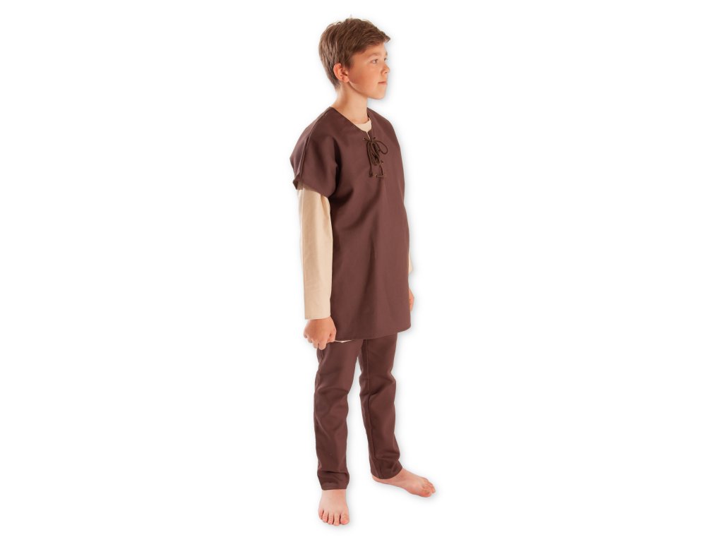 Hnědá dětská tunika s krátkým rukávem Peregrin představuje základ fantasy nebo historického kostýmu pro vaše ratolesti. Ať už vaše dítko touží býti Hobitem, panošem či rytířem, v této jednoduché tunice rozhodně svým kostýmem nezanikne v davu. Mrkněte se na další doplňky a rekvizity a doveďte kostým vašeho dítka k dokonalosti. Jednoduchá dětská tunika Peregrin byla ušita v naší krejčovské dílně ze 100% bavlny (kepr). Tunika je u krku opatřena šněrováním, má volný střih, takže nebrání v pohybu. Více o použitém materiálu se dočtete zde: popis materiálů.Diskusia