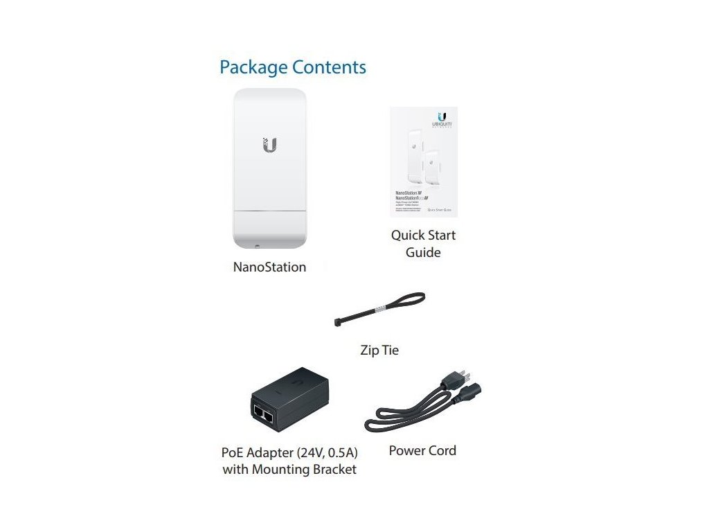 Ubiquiti NanoStation Loco M2NanoStation M2 Loco je kompaktní venkovní jednotka včetně 8,5 dBi antény (MIMO) pro pásmo 2,4 GHz. Jednotka umožňuje komunikaci reálnou rychlostí až 150 Mbps.