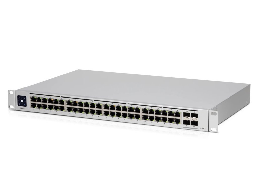 Ubiquiti UniFi Switch Pro 48UniFi Switch Pro 48 (USW-Pro-48) je spolehlivý switch s managementem v profesionálním provedení s možností montáže do racku. UniFi Switch Pro 48 je vysoce výkonný L3* přepínač disponující 48 GbE RJ-45 porty a 4 SFP+ sloty (10 Gb/s) pro připojení do optické sítě.