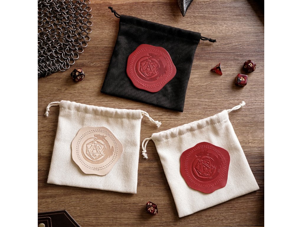 Pevný plátěný váček na kostky vyrobený v naší dílně. Pytlík má rozměry 13 x 13 cm a snadno se do něj vejde několik sad kostek. Můžete v něm ale také nosit figurky, žetony a další drobnosti, které potřebujete ke hraní her na hrdiny. Váček je ozdobený pečetí z hovězí kůže, do které je vyraženo dračí logo. Váček je určený především pro fanoušky Jeskyní a draků, ale díky nádhernému zpracování udělá radost každému hráči RPG. Ať už máte rádi Jeskyně a Draky, Dungeons & Dragons, Dračí doupě nebo Dračí hlídku, pořiďte si tenhle stylový váček, který vám budou ostatní závidět.Diskusia