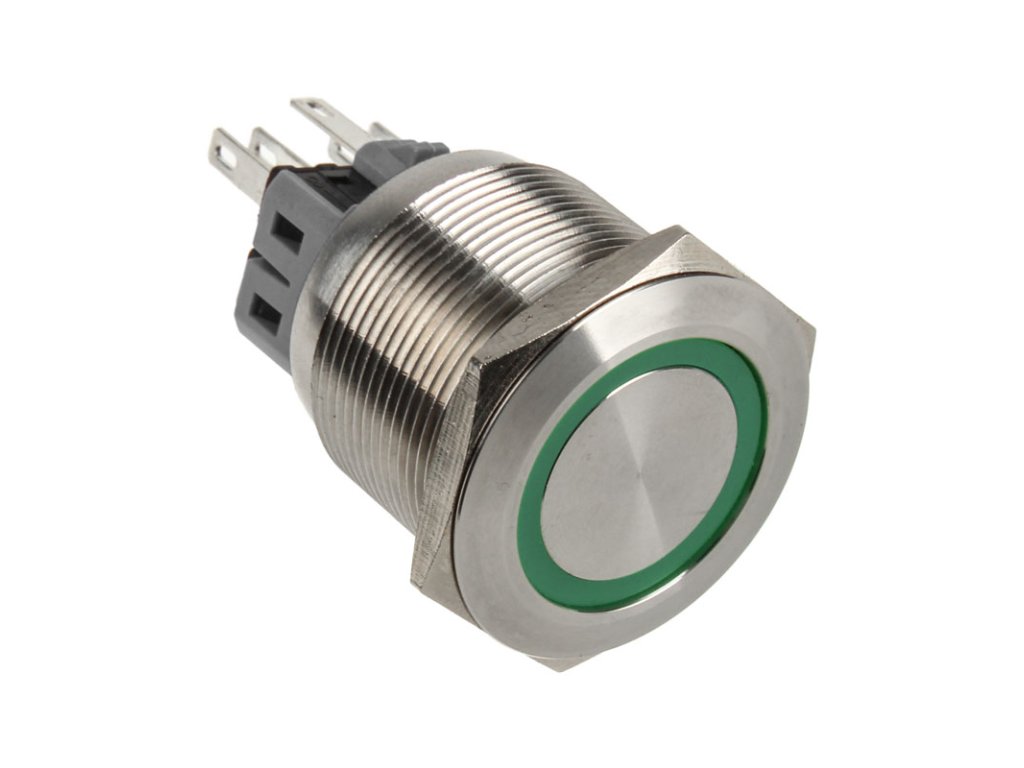 Tlačidlo sa inštaluje veľmi jednoducho pomocou závitu (25 mm) a tenkej šesťhrannej matice (27 mm). Elektricky je pripojené prostredníctvom normálne zatvoreného kontaktu a normálne otvoreného kontaktu, ako aj samostatného páru kontaktov na aktiváciu LED.