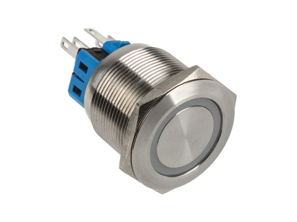 Tlačidlo sa inštaluje veľmi jednoducho pomocou závitu (25 mm) a tenkej šesťhrannej matice (27 mm). Elektricky je pripojené prostredníctvom normálne zatvoreného kontaktu a normálne otvoreného kontaktu, ako aj samostatného páru kontaktov na aktiváciu LED.