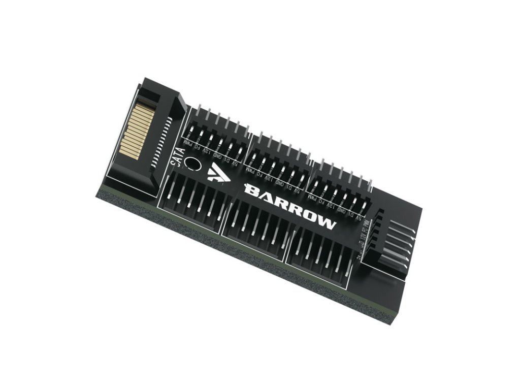 Nájdite pripojenie pre každý ventilátor vo vašom puzdre pomocouVentilátor Barrow a rozbočovač RGB.3- a 4-kolíkové varianty sa dá veľmi ľahko pripojiť; je tu priestor pre celkovosedem kusov. Signál pre osvetlenie sa generuje pomocoukáble 5VDG k základnej doske.Ventilátor a RGB čerpajú energiu prostredníctvomZákladná doska sám alebo prostredníctvomPripojenie SATA s napájacou jednotkou. To znamená, že bez problémov možno nainštalovať aj ventilátory náročné na napájanie. Ďalšou výhodou jeodstrániteľný lepiaci povrchktorý náboj pevne pripevní ku krytu.