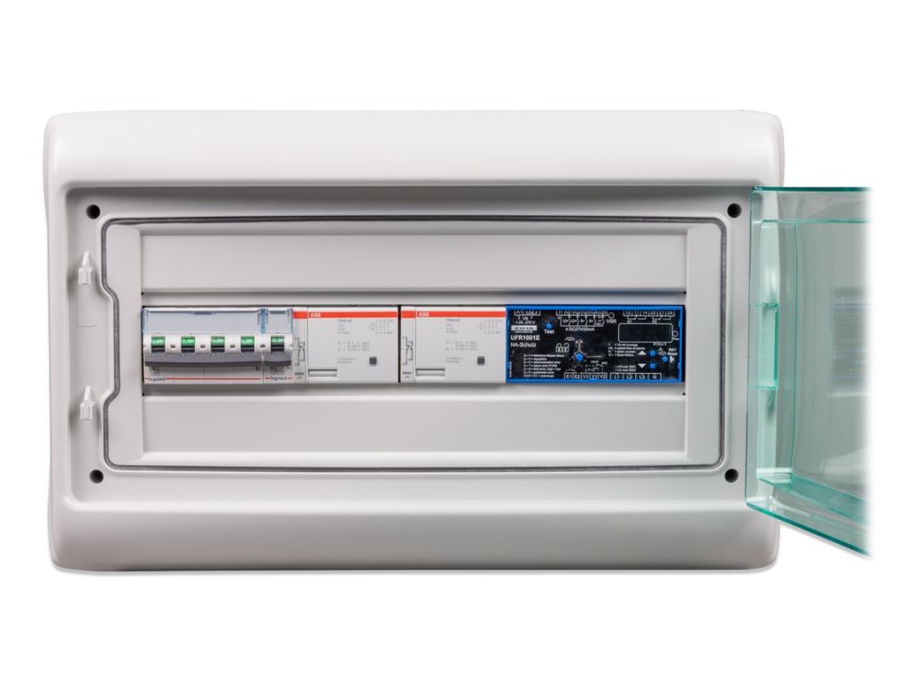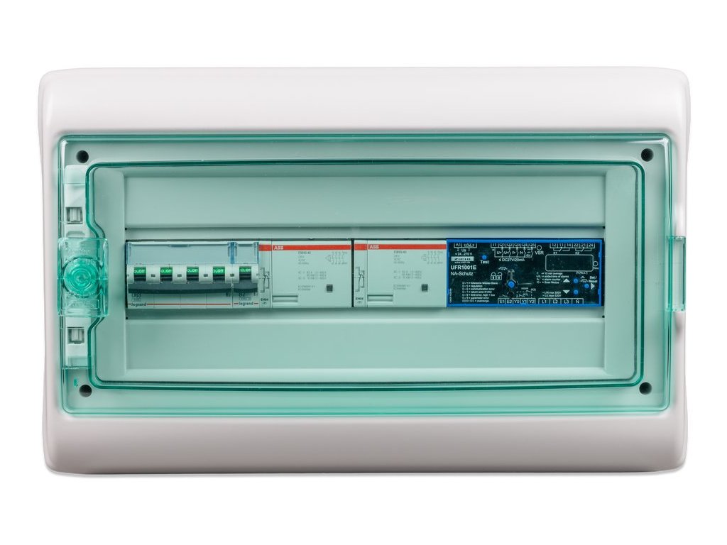 - Obsahuje relé Ziehl UFR1001E, které sleduje napětí a frekvenci