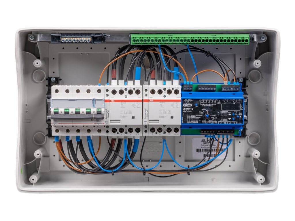 Victron Anti-Islanding Box 63 AAnti-Islanding Box 63 A je kombinací proti-ostrovní ochrany, relé Ziehl UFR1001E, dvou řadových stykačů a hlavního jističe. Je vhodný jak pro jednofázové, tak i pro třífázové systémy. Má jmenovitou hodnotu až 63 A na fázi a všechny součástky jsou pohodlně umístěny v krytu se stupněm krytí IP65. Relé UFR1001E monitoruje napětí a frekvenci na výrobních zařízeních s vlastní výrobou energie. Odpovídá požadavkům standardů VDE-AR-N 4105 bdew, G59/3, G83/2 a ÖVE/ÖNORM E 8001-4-712:2009 pro generátory připojené k veřejné elektrické síti.