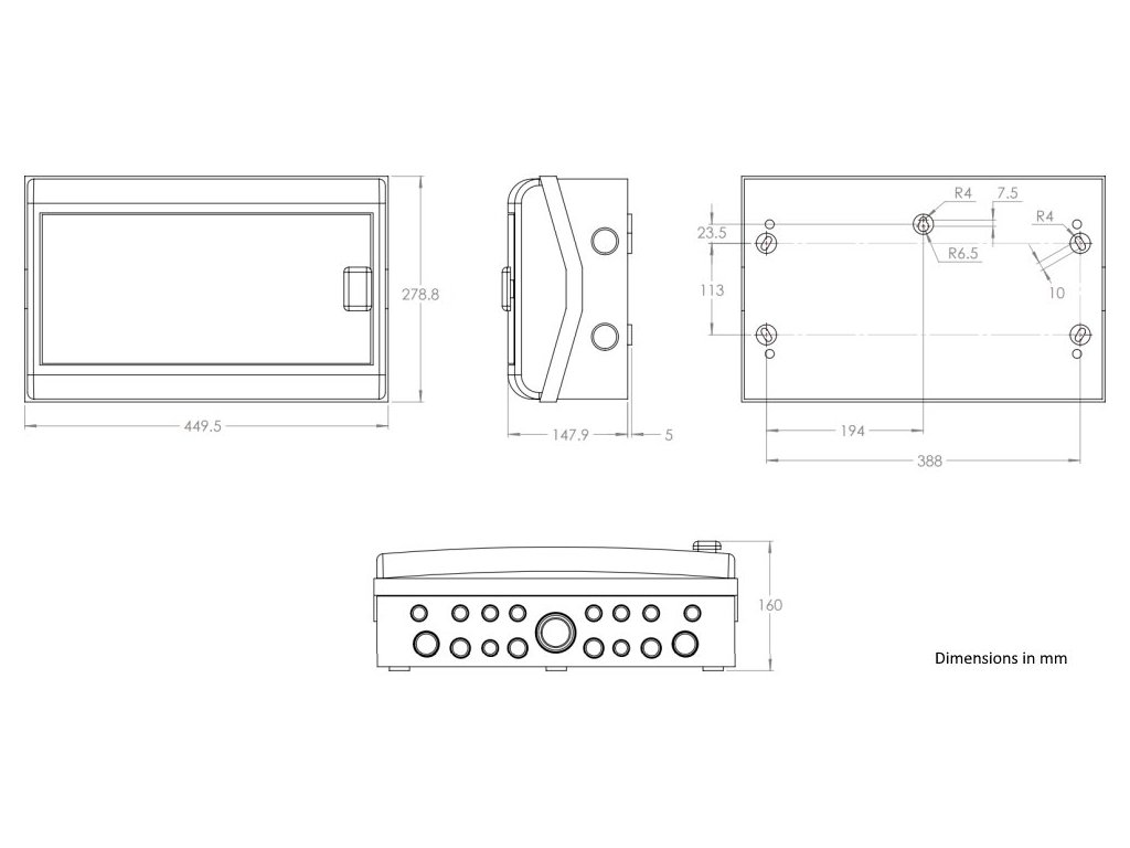 Rozměry: 449,5 × 278,8 × 147,9 mm