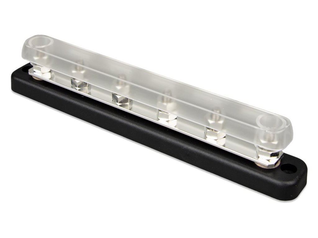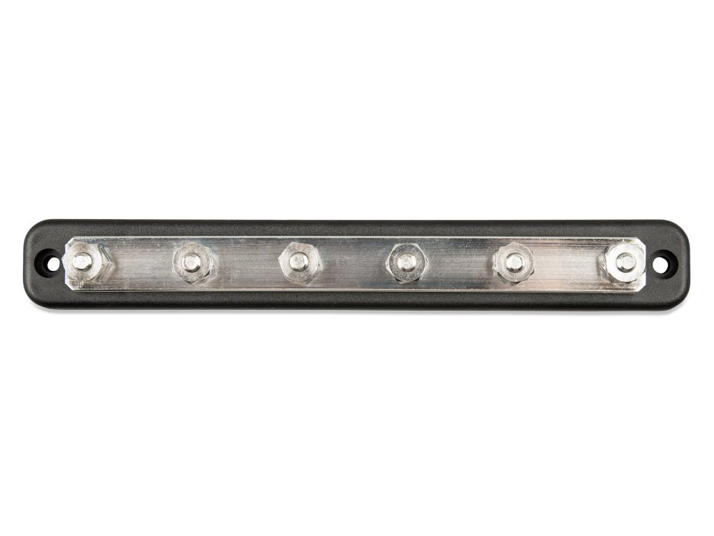 Victron DC přípojnice 150 A 6PDC přípojnice (busbar) se používá pro distribuci vysokého DC proudu a současně také slouží jako připojení pro baterie a/nebo DC zařízení. Každá DC přípojnice je vybavena odnímatelným ochranným krytem.